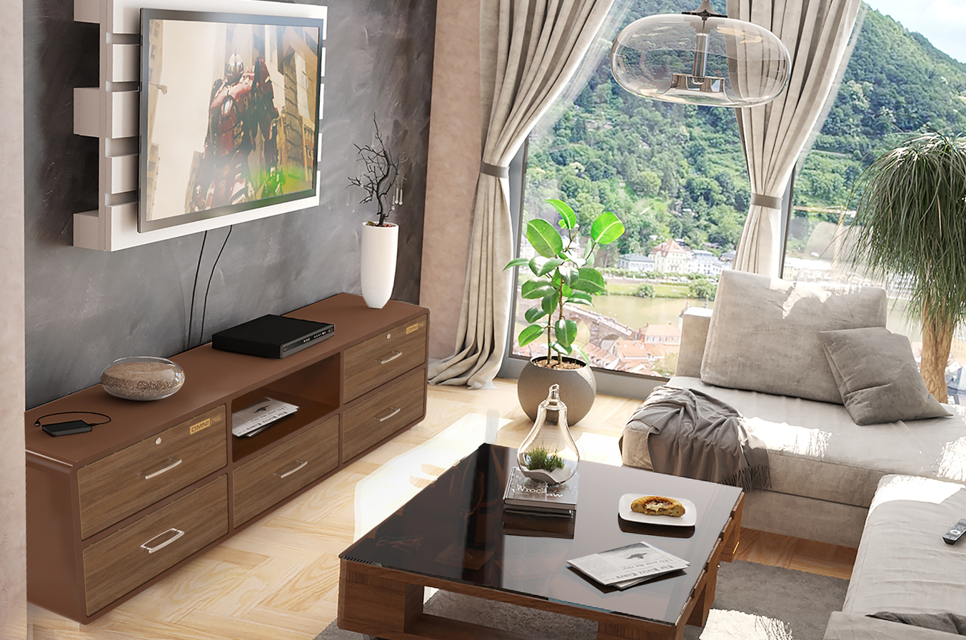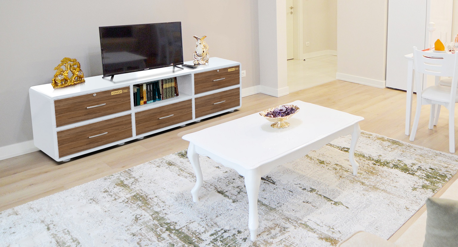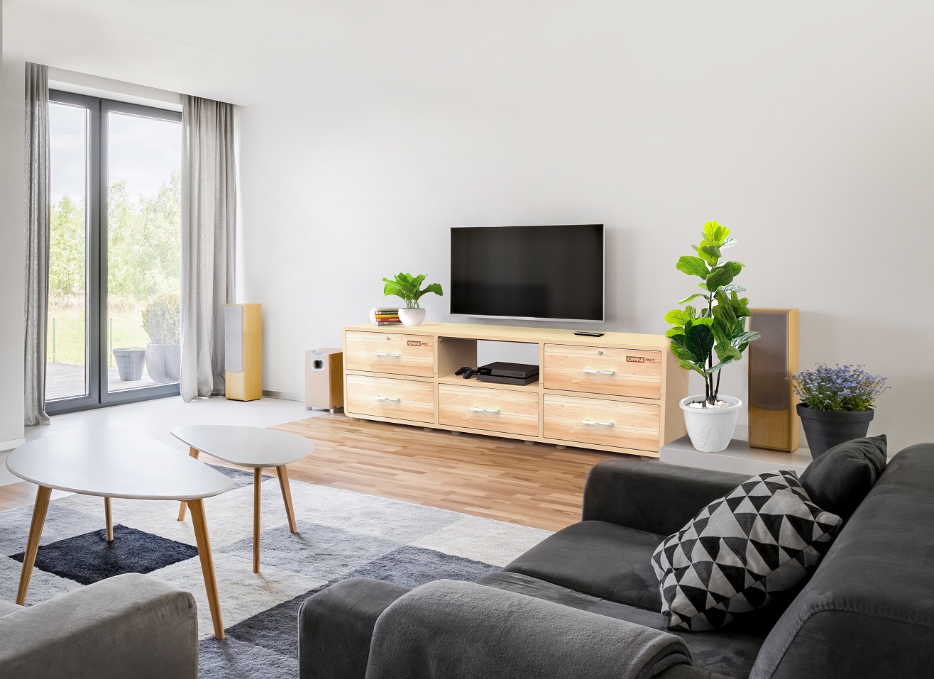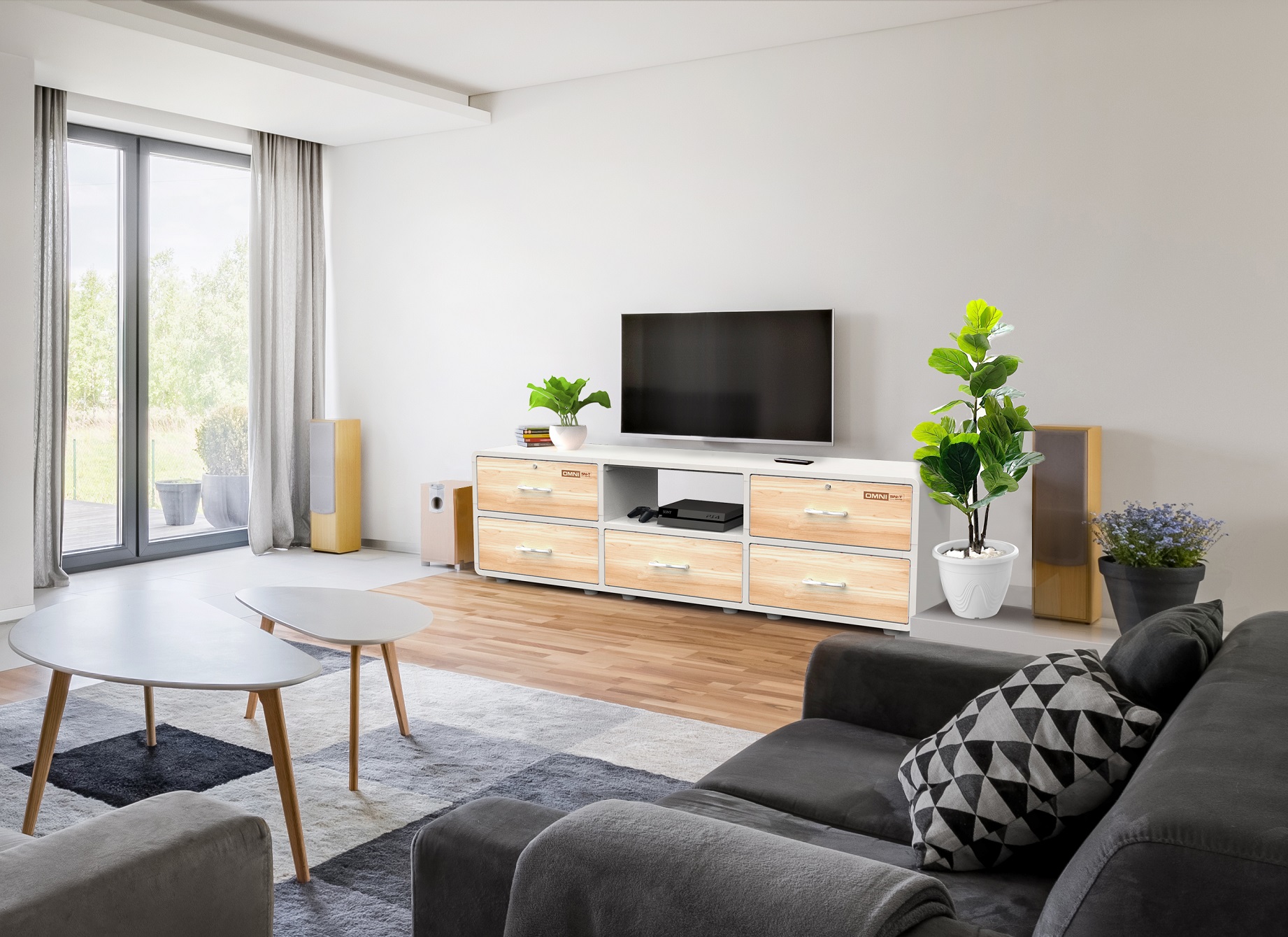 Kệ để Tivi nhựa Duy Tân OMNI 5 ngăn 2 tầng (205 x 48 x 61 cm) Màu Gỗ Sậm