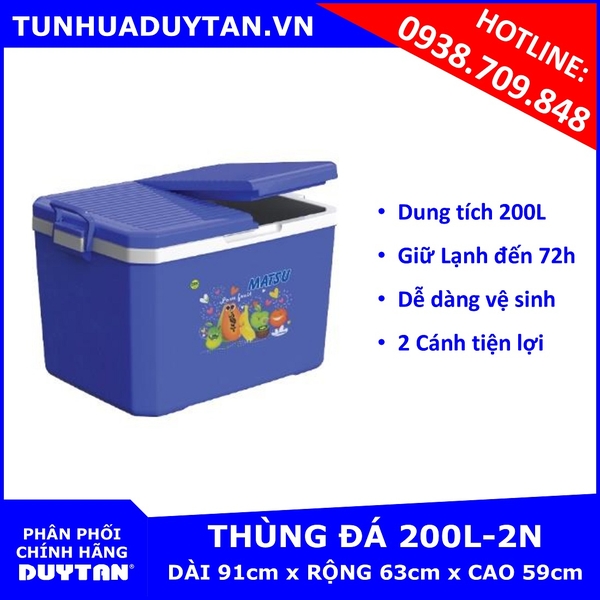 Thùng đá Duy Tân 200L 2 Cánh (Xanh) giữ lạnh đến 72h với công nghệ PU FOAM