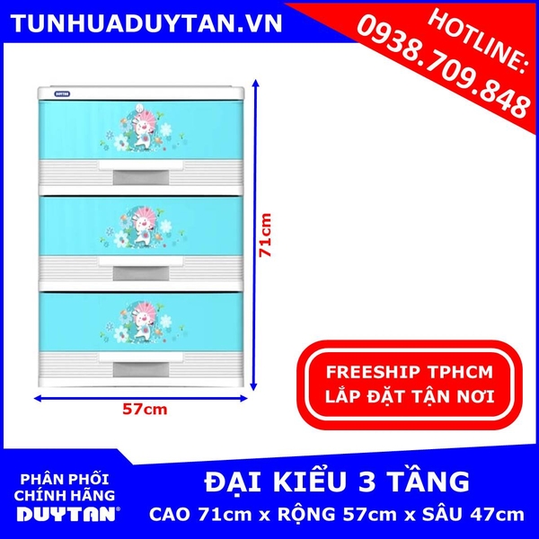 - Tủ nhựa Duy Tân ĐẠI KIỂU 3 tầng có kích thước rộng 57cm x sâu 47cm x cao 71cm