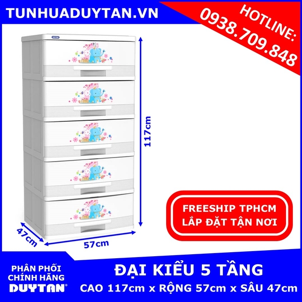 - Tủ nhựa Duy Tân ĐẠI KIỂU 5 tầng có kích thước rộng 57cm x sâu 47cm x cao 117cm