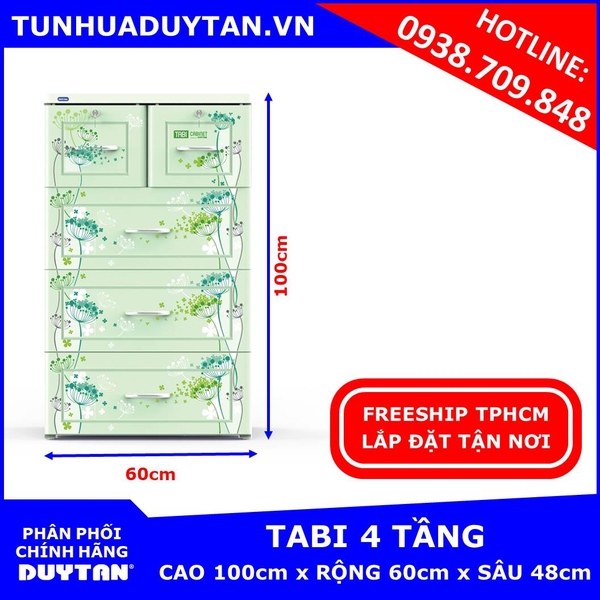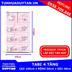 - Tủ nhựa Duy Tân TABI 4 tầng có kích thước rộng 60cm x sâu 48cm x cao 100cm