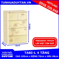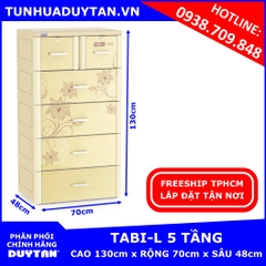 - Tủ nhựa Duy Tân Tabi-L 5 tầng có kích thước rộng 70cm x sâu 48cm x cao 130cm