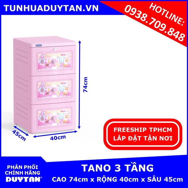 Tủ nhựa Duy Tân TANO 3 tầng (Hồng)