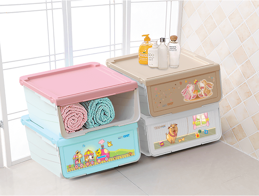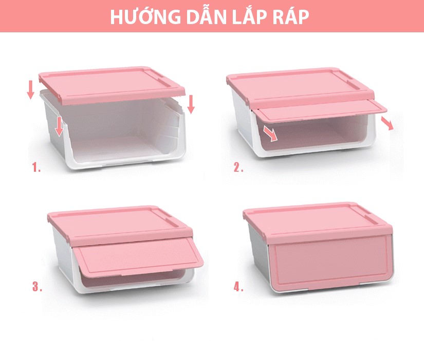 - Cạnh tủ được bo tròn,hộc tủ có thể chồng lên nhau